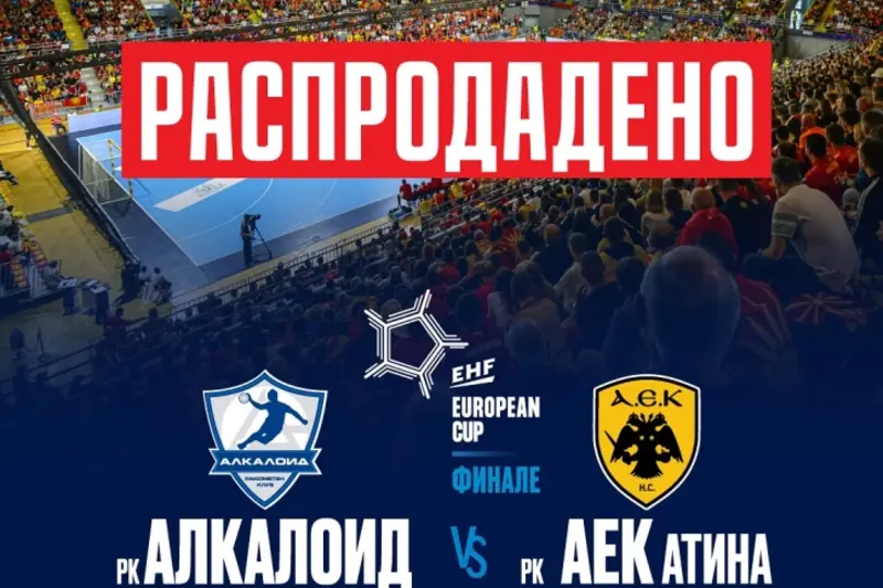 Нема повеќе билети за историското финале на РК Алкалоид кој в недела ќе го пречека АЕК во реваншот од финалето на ЕХФ Европскиот куп.