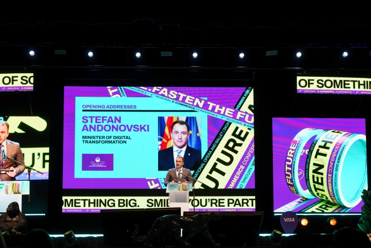 Владата на Република Македонија ја потврдува својата посветеност кон унапредување на електронската трговија како двигател на економијата, преку спроведување на јасна стратегија за дигитална трансформација, зајакнување на интероперабилноста и намалување на административните пречки за граѓаните и компаниите. Ова го порача денеска министерот за дигитална трансформација Стефан Андоновски, на отворањето на осмата регионална Е-комерц конференција во Скопје.