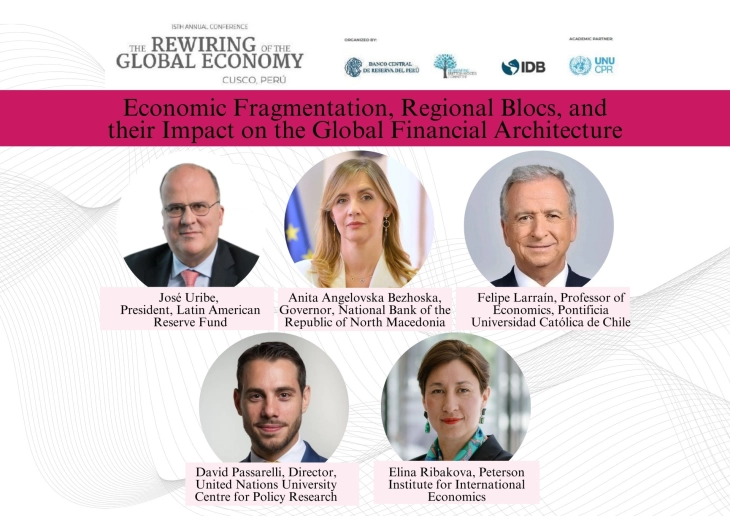 Гувернерката Ангеловска-Бежоска учествуваше на панел-дискусијата „Економската фрагментација, регионалните блокови и нивното влијание врз глобалната финансиска архитектура“, заедно со Фелипе Лараин, професор по економија на Католичкиот универзитет во Чиле, Дејвид Пасарели, директор на Универзитетскиот центар за истражување на политиките на Обединетите нации, Елина Рибакова од Американскиот институт за меѓународна економија Петерсон, а претседавач на панел-дискусијата беше Хозе Урибе, претседател на Резервниот фонд на Латинска Америка.