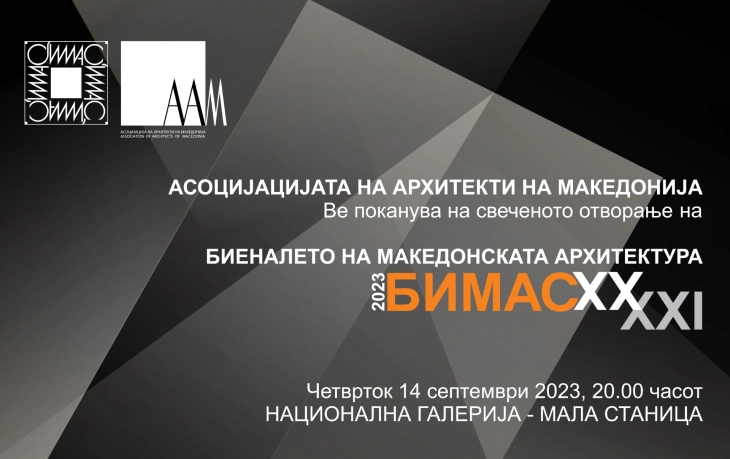 Асоцијацијата на архитекти на Македонија (ААМ) од денеска до 29 септември ќе организира две изданија на Биеналето на македонската архитектура (БИМАС). Заедно со годинашното, 21-во издание, ААМ го организира и претходното, 20-то издание на БИМАС, кое беше одложено поради пандемијата.