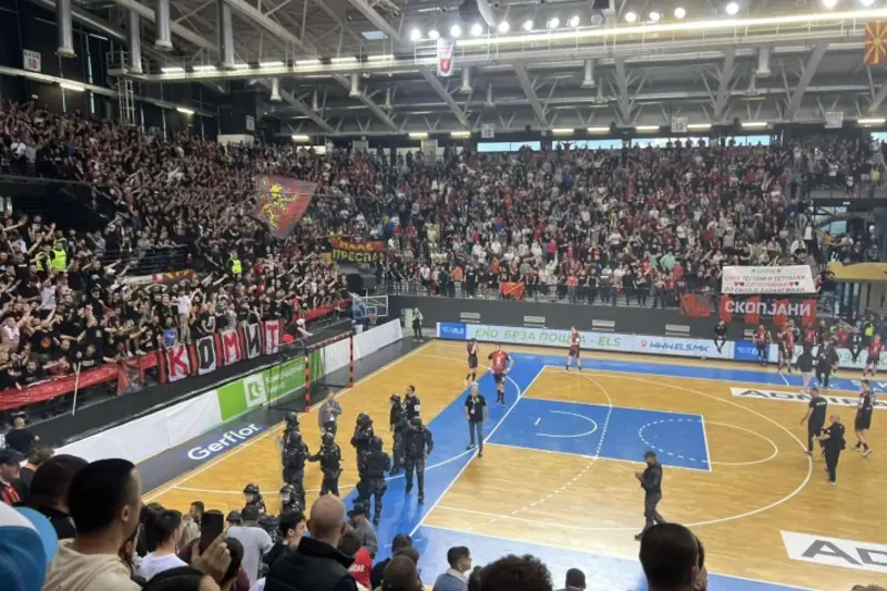 МВР информира дека за време на синоќешниот ракометен натпревар помеѓу екипите на РК „Вардар 1961“ од Скопје и РК „Пелистер“ од Битола во Спортскиот центар „Јане Сандански“ во Скопје полициски службеници ги лишиле од слобода П.Д.(26) и Д.А.(23), двајцата од Битола, зашто кај нив биле пронајдени и одземени пиротехнички средства.