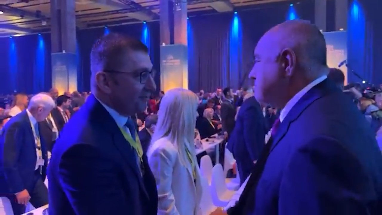 Се поздравија, но не разговараа - Мицкоски и Борисов на иста маса во Валенсија. На дводневен Конгрес во Шпанија, каде се избра старо-новиот претседател на ЕПП Манфред Вебер, во атмосфера на срдечни насмевки и прегратки, македонскиот премиер и лидерот на бугарската ГЕРБ, подадоа рака.