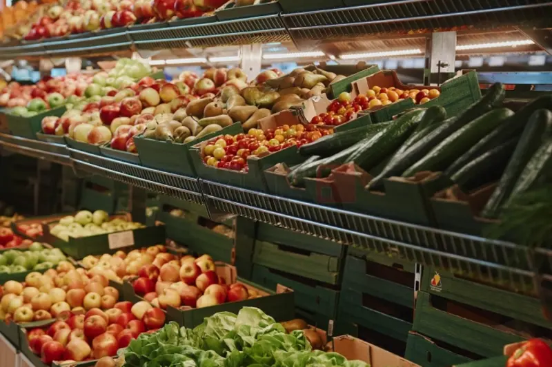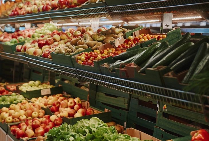 Кога станува збор за овошјето и зеленчукот, нивните цени за еден килограм се движат од 1 до 4 евра (просек 2,11 евра) за оризот, од 1,2 до 3 евра (просек 2,47) за јаболката, 1,3 до 3 евра (просек 2,06 евра) за бананите, од 1,2 до 3,89 евра (просек 2,24 евра) за портокалите, од 1,2 до 4,2 евра (просек 2,59) за доматите, од 0,75 до 3 евра (просек 1,98 евра) за компирите и од 0,75 до 3 евра (просек 1,63 евра) за кромидот, додека цената на едно парче марула се движи од 0,9 до 2 евра или во просек 1,28 евра.