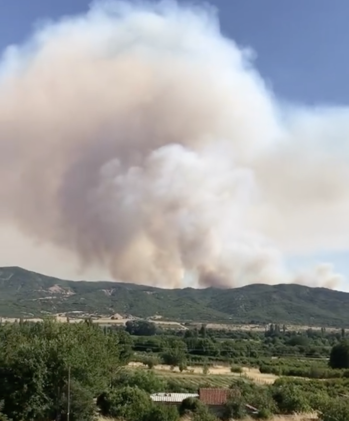 Активниот пожар е кај селото Стровија, во близина на местото Гајдарец-Клепало, во општина Долнени, каде што гори нискостеблеста шума.