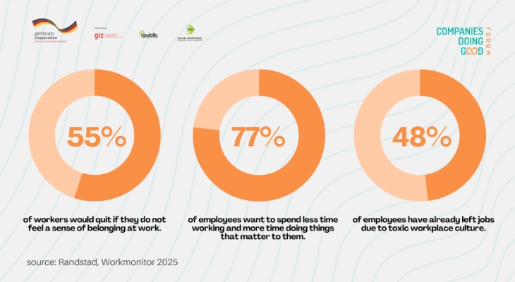 - Имајќи го предвид ова, како и фактот дека дури 55 проценти од вработените би си заминале од работа доколку не се чувствуваат како дел од тимот, 58 проценти од компаниите сакаат да ја подобрат својата работна култура, но, не знаат како (Randstad Work Monitor), велат организаторите на настанот.