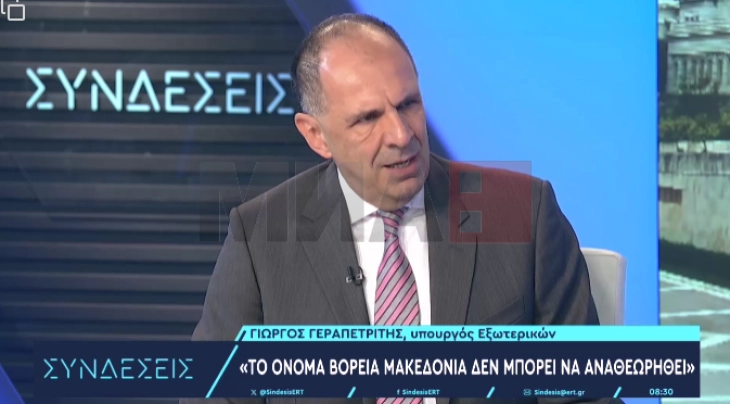 Доколку Северна Македонија продолжи со оваа политика, која е директно спротивна на меѓународните договори, тогаш грчката страна ги има оние средства за да може да изврши уште поголем притисок, средства што се и билатерални и мултилатерални на ниво на меѓународните организации, рече министерот за надворешни работи на Грција Јоргос Герапетритис во интервјуто за грчката телевизија ЕРТ.