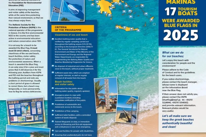 Меѓународната награда за квалитет „Сино знаме“ оваа година ја добија 623 грчки плажи, 17 марини и 17 туристички јахти, со што Грција ја задржа втората позиција меѓу 52 земји од целиот свет по сини знамиња за квалитетот на водата за пливање, заштитата на животната средина, организацијата и безбедноста на посетителите, јави дописничката на МИА од Атина.