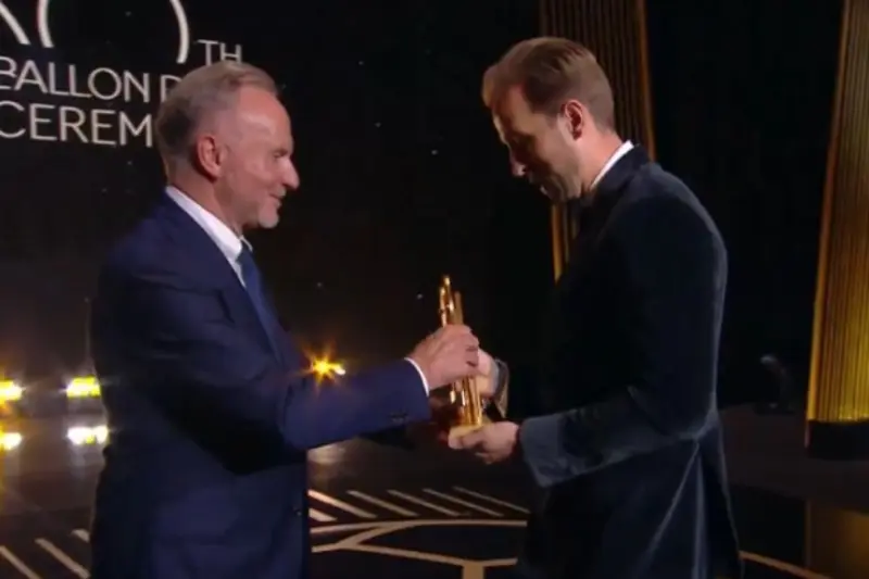 За време на церемонијата на „Златната топка“, фудбалерот на Баерн Минхен доби награда која, во принцип, треба да ја подели со Килијан Мбапе.