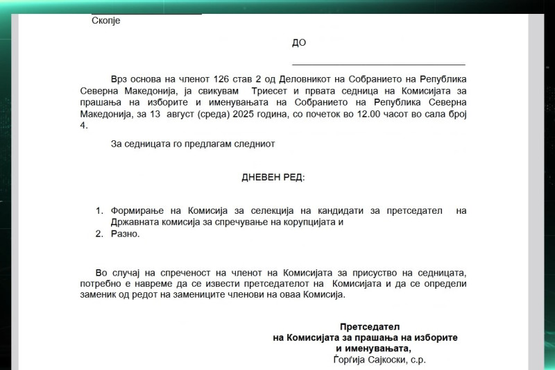 Институционален пинг понг за избор на нов претседател на ДКСК, откако антикорупционерите му се обратија на Собранието. Денеска тоа повторно ја врати топката кај нив-тие да дадат мислење дали во период на веќе распишани избори треба да донесат одлука за избор на прв човек на Антиорупциска.