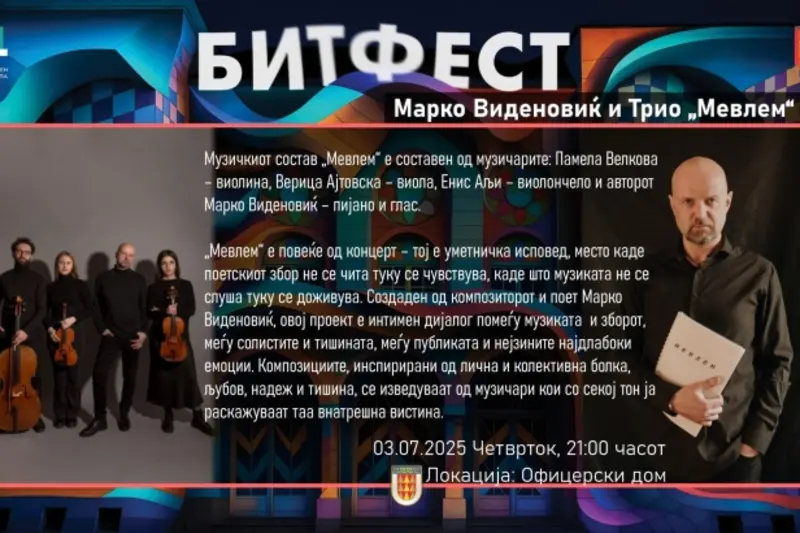 -Целта никогаш не беше само да се приреди концерт, туку да се отвори простор за уметнички дијалог, за разбирање и заедништво. Резултатите од тоа не се само мерливи преку број на публика, аплаузи или медиумски интерес – туку преку тишината меѓу две композиции, преку солзите по последниот акорд, преку луѓето што приоѓаат по концертот не за да честитаат, туку за да споделат своја приказна. А токму тоа, всушност, беше и крајната цел, истакна во пресртен на вечерашниот концерт, Марко Виденовиќ, автор на проектот „Мевлем“, кој вечерва ќе биде претставен пред публиката во битолскиот Офицерски дом.