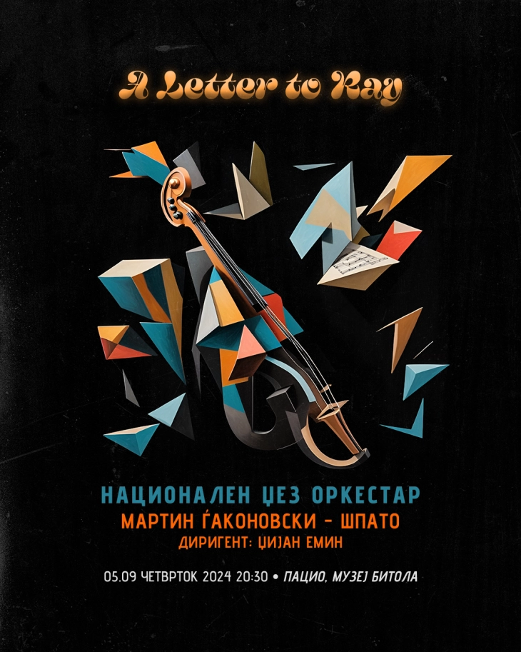 Националниот џез оркестар вечер во Битола ќе одржи концерт „A Letter to Ray“ на кој гостин ќе биде Мартин Ѓаконовски - Шпато. Диригент на концертот ќе биде Џијан Емин.