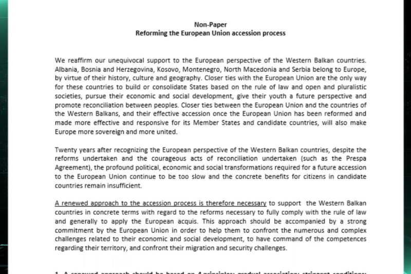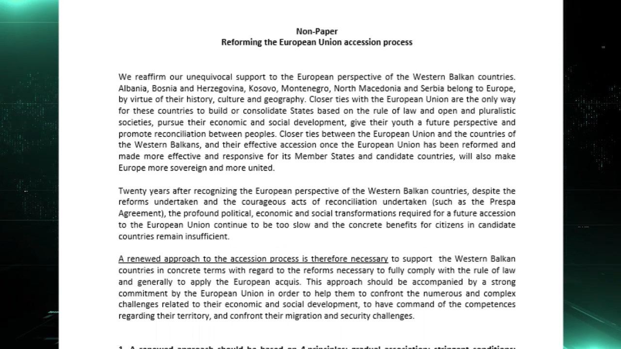 Францускиот „нон пејпер“ во рацете на Бујар Османи. Од прво читање воочливи позитивни седум точки, меѓу кои реверзибилноста која може да биде позитивен стимулс во одржување на фокусот и во забрзување на процесот.