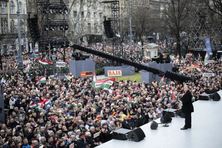 Опозициската партија Тиса, предводена од поранешниот владин член Петер Маѓар, кој се појави на унгарската политичка сцена пред една година, денеска организира митинг на кој се очекуваат десетици илјади луѓе.
