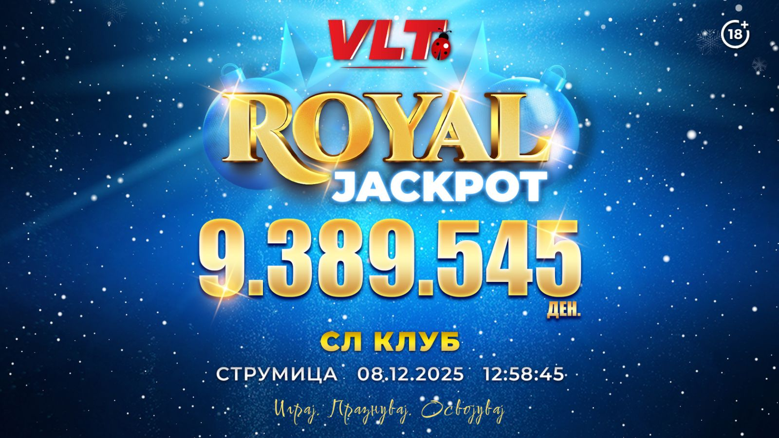 Празнична ВЛТ џекпот магија: Во Струмица освоен првиот РОЈАЛ ЏЕКПОТ вреден 9.389.545 денари