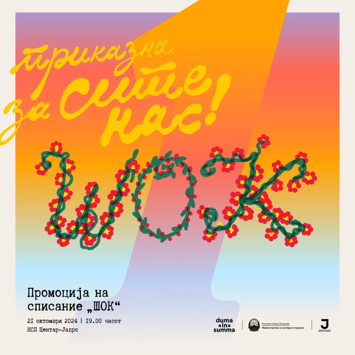 Во КСП Центар - Јадро во Скопје денеска ќе се одржи промоција на списанието за млади „Шок“. Првиот број на списанието го означува и првиот роденден на „Дума ин Сума“, неформалното здружение за култура создадено од книжевничките Ивана Смилевска, Марија Бошковска и визуелниот уметник Дарко Алексовски.