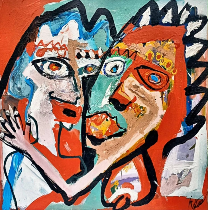 Насловната страница на стихозбирката е илустрирана со сликата „Прегратка“, 2021 г., на Трајче Чатмов.
