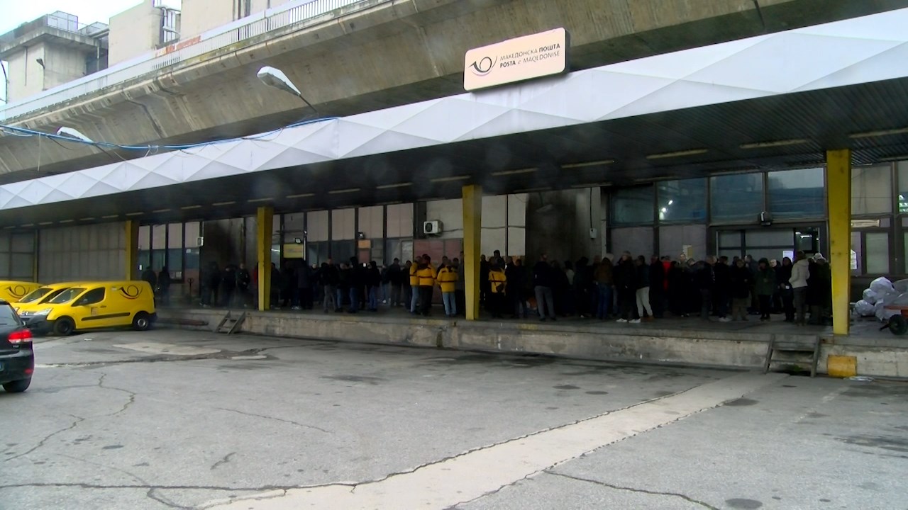 Доцнењето на платата но и лошите услови за работа ги принудија да вработените во Македонска пошта да излезат на протест ... Протестот не е ограничен само на Скопје...Незадоволството кулминираше и во други градови, каде вработените, со истото барање, излегоа пред објектите на македонска пошта ..За 1700 лица, декемвриската плата се уште не е стигната а на 300 поштари со години не им е решен работниот статус.