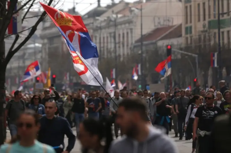 Веќе неколку часа пред протестот улиците на центарот на Белград се преполни со луѓе, а од целиот град пристигнуваат нови групи демонстранти со национални знамиња и транспаренти, заедно со вревата што ја прават со свирежи и свирежи на навивачите.