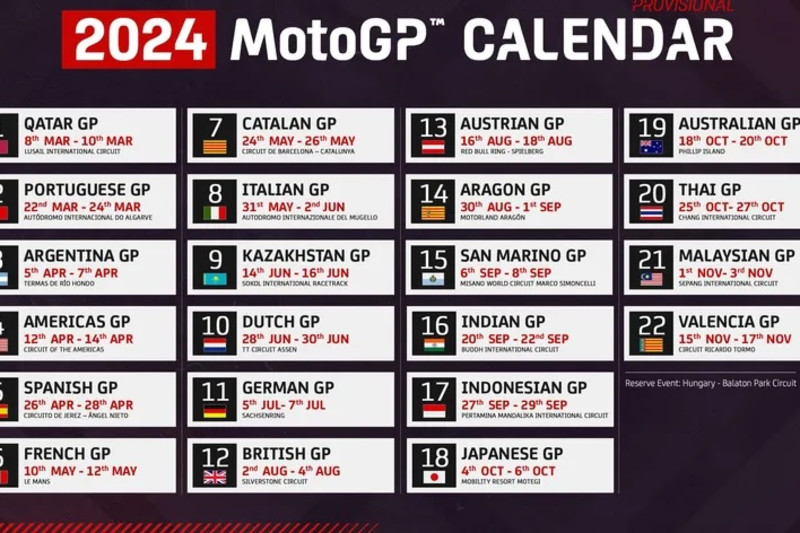 Рекордни 22 трки ќе се одржат следната сезона во Мото ГП шампионатот, соопштија денеска организаторите. Во годината кога Мото ГП ја слави својата 75-годишнина, во 2024 година ќе се одржат 22 трки во 18 земји.