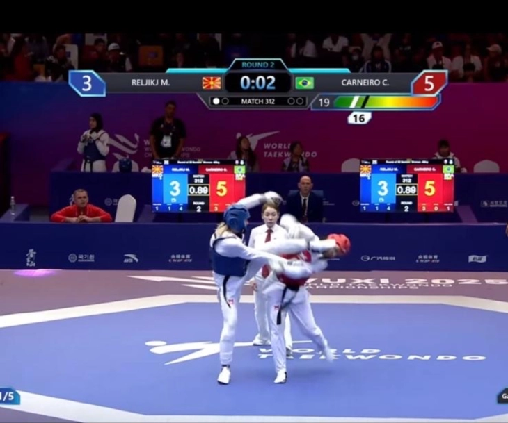 Македонската таеквондо натпреварувачка Милијана Релиќ го освои 9. место на Светското првенство Г-14 во Вукси, Кина.
