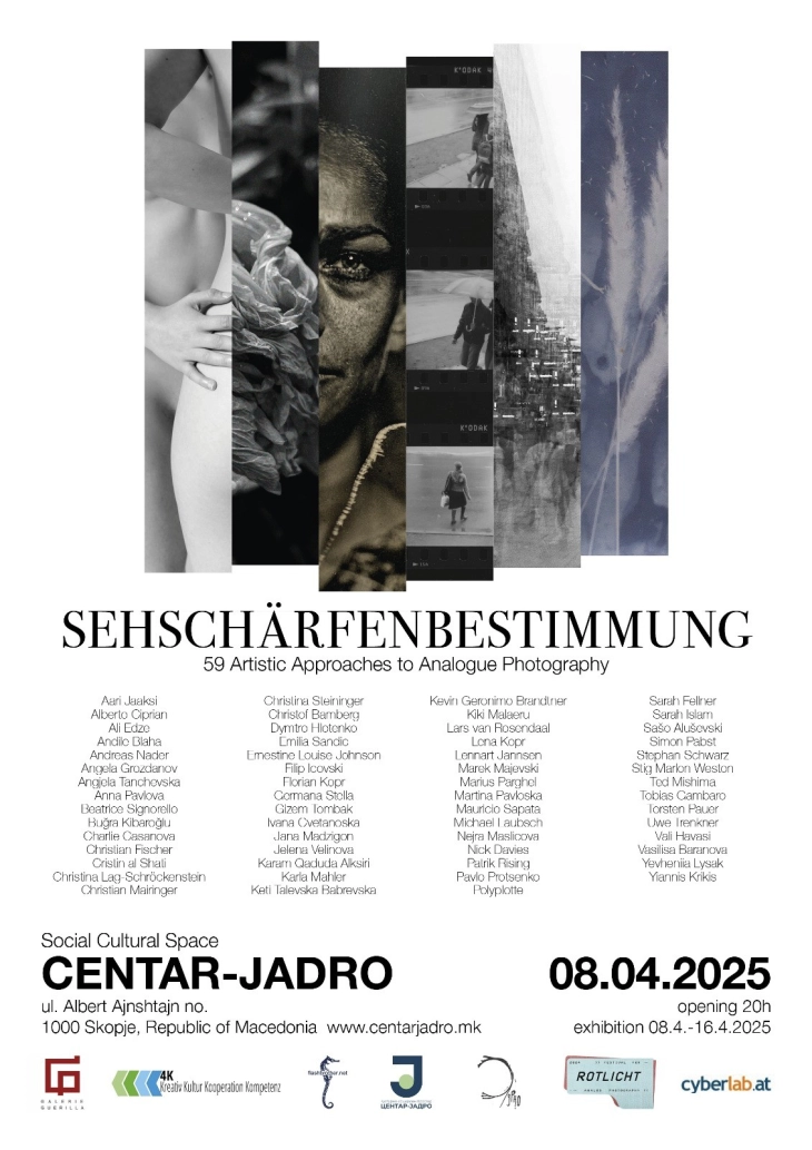 -Ревијална поставка која ги обединува љубителите на аналогната фотографија од Европа и пошироко, голем дел од авторите/авторките се учесници на работилниците за благородни фотографски постапки кои ги организира Зрно фестивалот. Во рамките на оваа изложба, 60 автори ќе се претстават со по едно дело, нудејќи широк спектар на креативни изрази и техники. Оваа изложба е можност да се доживее богатството на современата аналогна фотографија, која доживува своевидна ренесанса во светот. Во денешно време вистинските уметници се заситени од алгоритми врз кои немаат контрола, дела кои немаат авторски печат и тактилна димензија. Аналогната фотографија и старите благородни техники, кои ги негува Зрно фестивалот, стануваат се попопуларни во светот на современата уметност. Оваа година мото на Зрно фестивалот е: Фотосинтеза! – Зрно ги обединува авторите од светот и се храни со светлината. Внатрешна и надворешна, соопштија од фестивалот.
