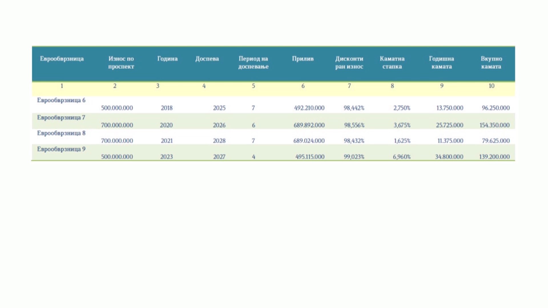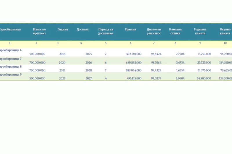 2,87 милијарди евра или половина годишен буџет треба да врати земјава во следните три години, за да го отплати долгот од земените четири еврообврзници. Од овие пари, речиси половина милијарда се камати.