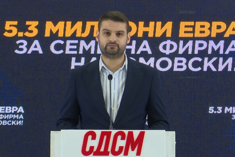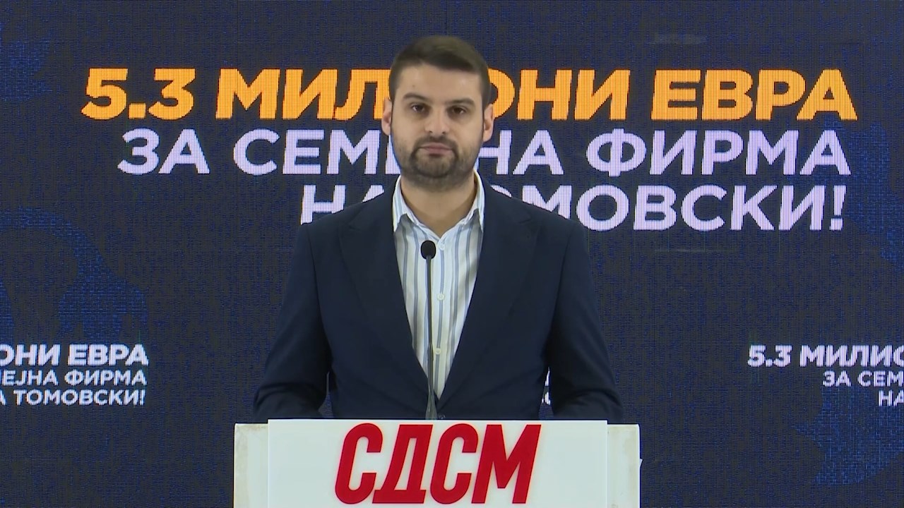 Над 5 милиони евра преку тендери од државни институции и од општини добила семејната фирма на директорот на Службата за општи и заеднички работи, Ивица Томовски, објави на прес-конференција генералниот секретар на СДСМ Александар Димитриевиќ, откако партијата најави серијал на корупциски скандали за власта....