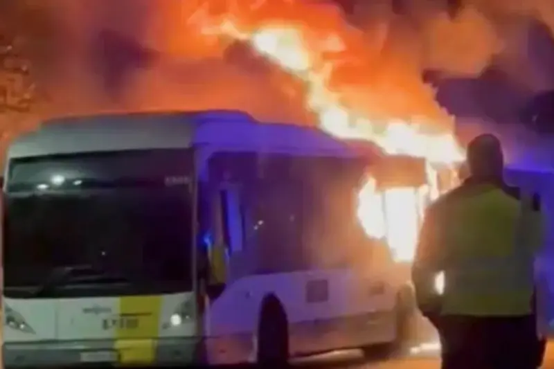 Се запали автобус со навивачи на „Барселона“ во Бриж, нема жртви