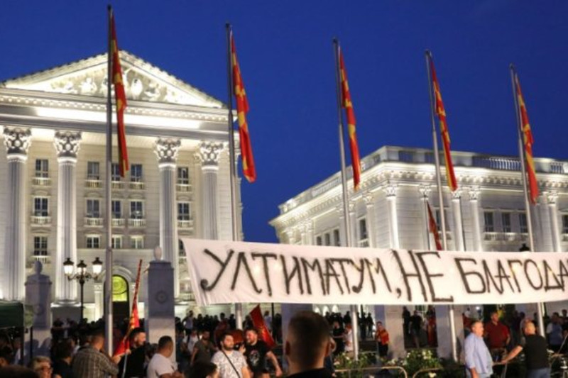 Протестот против францускиот предлог, под мотото „Ултиматум – НЕ благодарам“, се одржува седми ден. Учесниците од Владата ќе се упатат кон Министерство за правда каде се очекува да ги искажат своите пораки, а потоа ќе продолжат пред Собранието.