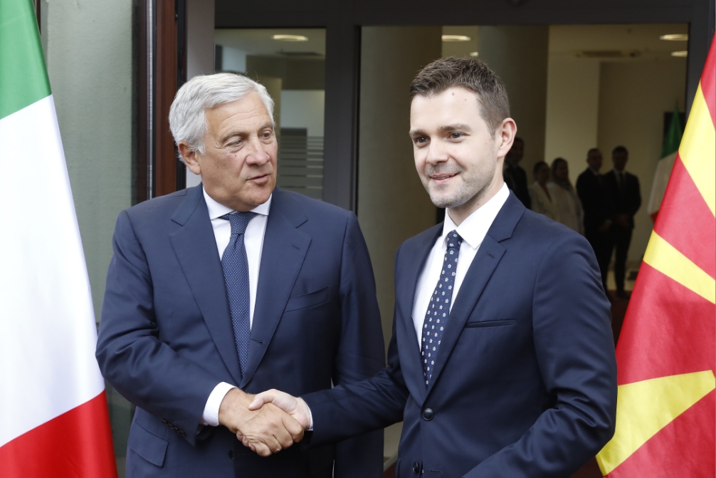 Во Скопје министерот Тајани се сретнА со Претседателката на Републиката, Гордана Сиљановска-Давкова, со претседателот на Собранието Африм Гаши, со премиерот Христијан Мицкоски и со министерот за надворешни работи и надворешна трговија Тимчо Муцунски со кого одржаа заедничка прес конференција.