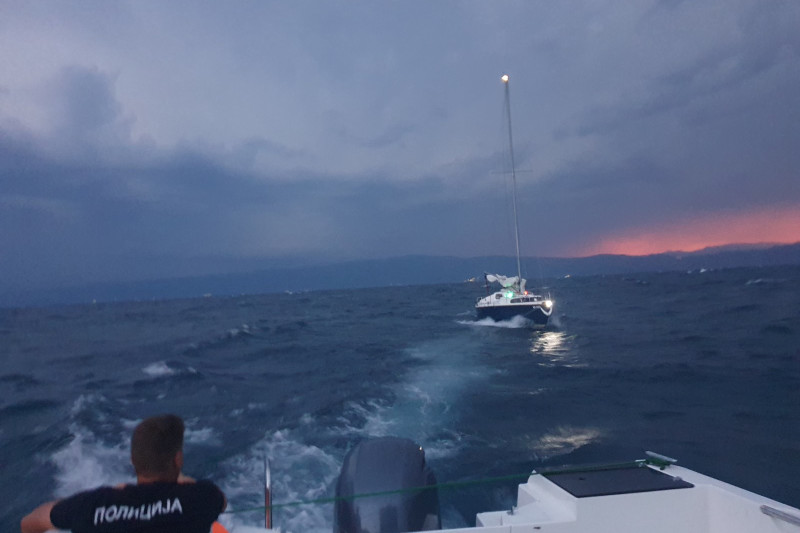- Н.Б. (55) од Охрид, кој ја управувал едрилицата заедно со другите лица кои се превезувале на неа се спасени и безбедно пренесени до Полициската станица за граничен надзор „Охридско Езеро" во добра здравствена состојба, без повреди, се наведува во соопштението од МВР.