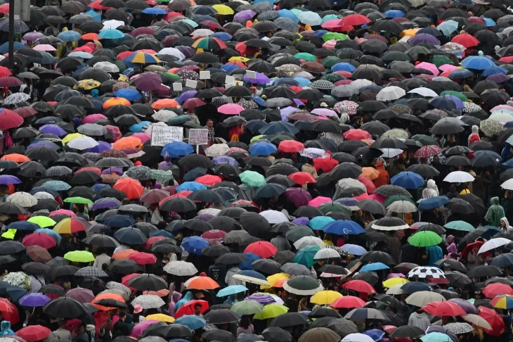 Студентите се собраа и пред студијата на РТС во Кошутњак, каде им оддадоа почит на загинатите во несреќата кога се урна настрешницата на железничката станица во Нови Сад.