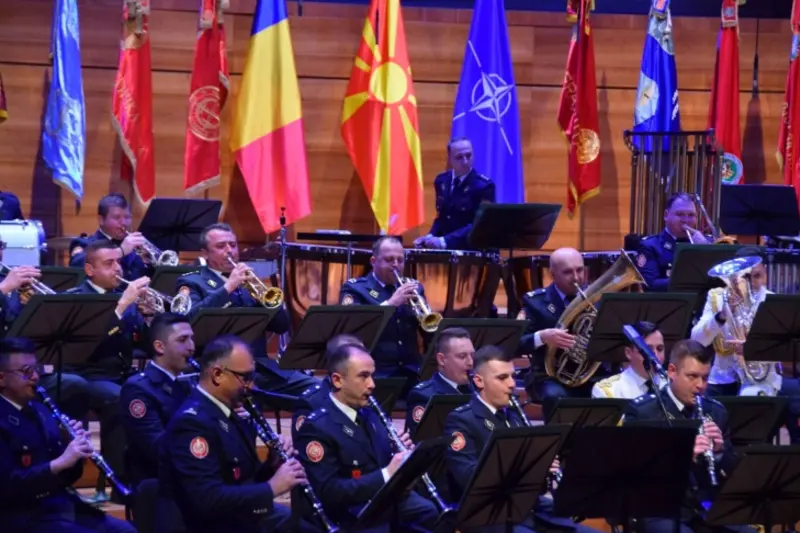 -По пречекот на претседателката и врховен командант на Вооружените сили Гордана Сиљановска-Давкова и интонирањето на химната на Романија и македонската химна, здружениот оркестар, под диригентската палка на мајор Каталин Ион од Вооружените сили на Романија, концертот го започна со свечена фанфара, a продолжи со позната љубовна тема од Романија. Првиот дел беше заокружен со популарен сплет на светски хитови аранжирани за дувачки оркестар и композицијата „Концертна прослава”, со мотиви од романското поднебје. По него, под раководство на диригентот на Воениот оркестар на Армијата, потполковник Горан Илијевски, следеа блок на нумери од македонското поднебје, во кој беа опфатени фолклорни теми, народни песни, но и незаборавни забавни македонски евергрини, соопшти АРМ.