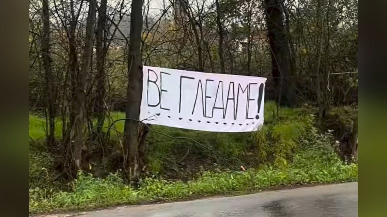 „Ве гледаме!“ – порачаа од „Кој е следен“ на транспарент пред судницата во Идризово