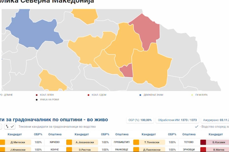 Во четири од шест општини на истокот победник е ВМРО-ДПМНЕ, во Кочани победи ВМРО-ДПМНЕ, во Македонска Каменица СДСМ