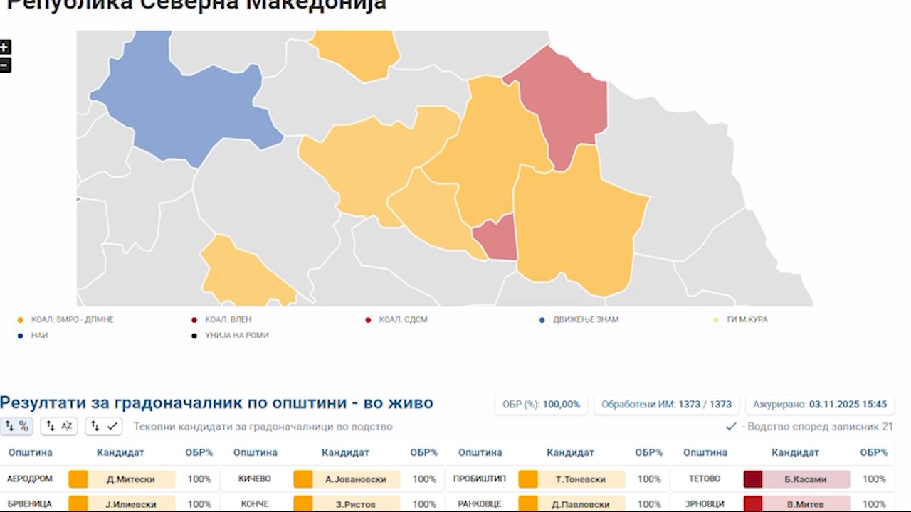 Во Пробиштип, пак со разлика од само 29 гласа, победата отиде кај Тони Тоневски, кандидатот поддржан од ВМРО-ДПМНЕ. Единствена промена во резултатот од гласањето од пред две недели имаше во најмалата општина на истокот. Во Зрновци, според резултатите што ги објави Државната Изборна комисија, кандидатот на коалицијата предводена од СДСМ, Ванчо Митев доби 691 глас, односно 12 гласа повеќе од кандидатот на ВМРО-ДПМНЕ, Борчо Коцев, за кого гласале 679 избирачи.