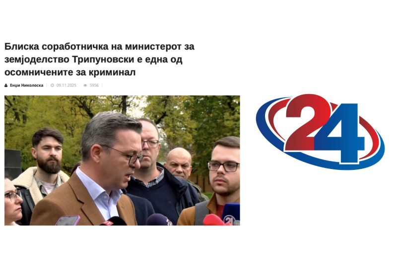 Во продолжение, оригиналната објава на сајтот на ТВ 24: https://24.mk/details/bliska-sorabotnichka-na-ministerot-za-zemjodelstvo-tripunovski-e-edna-od-osomnichenite-za-kriminal