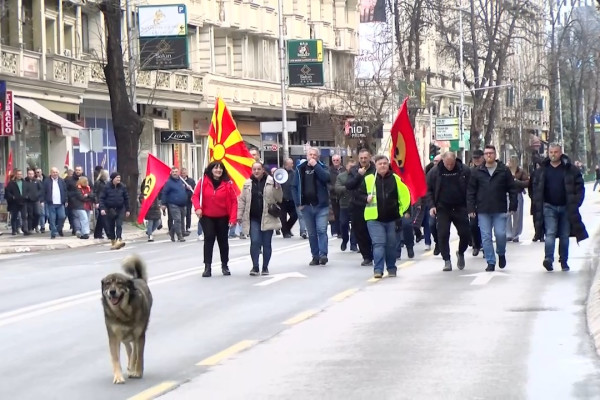 Синдикалците на втора блокада, денеска пред Организацијата на работодавачи. Не отстапуваат од барањата за минимална плата од 600 евра и по 100 евра за останатите ...