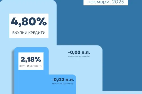 Просечната каматна стапка на вкупните кредити, во ноември 2025 година, забележа месечен и годишен пад од 0,02 п.п. и 0,56 п.п., соодветно и изнесува 4,80%. Просечната каматна ...